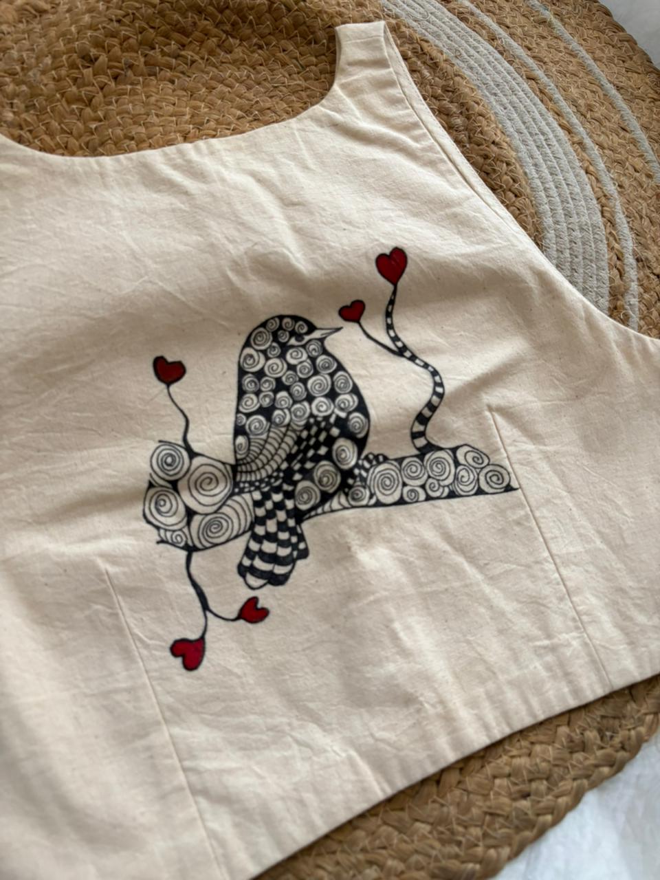 Hand drawn and painted zentangle art on one side of the blouse.