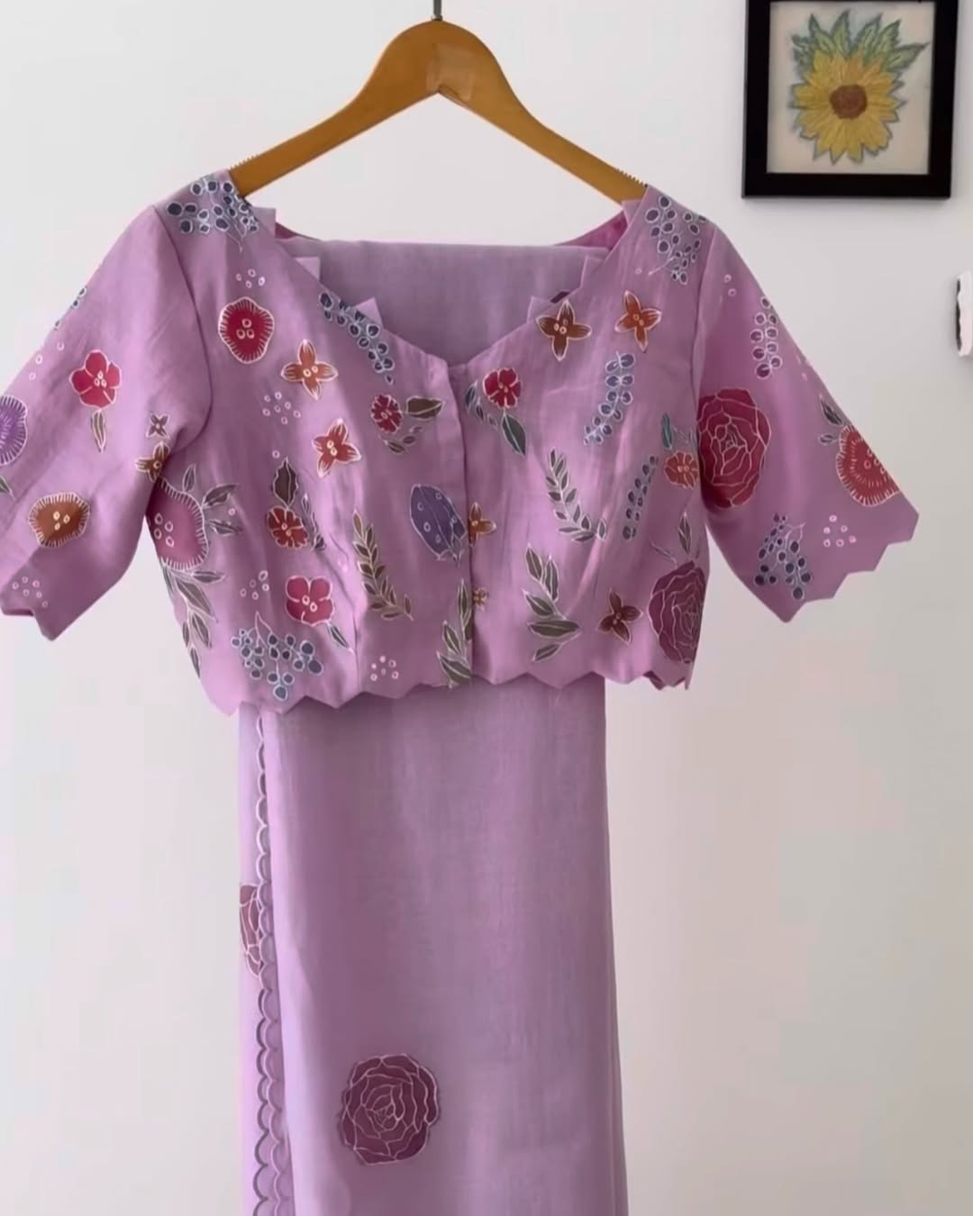 Lavender Handloom Chanderi Saree + Blouse – Handpainted