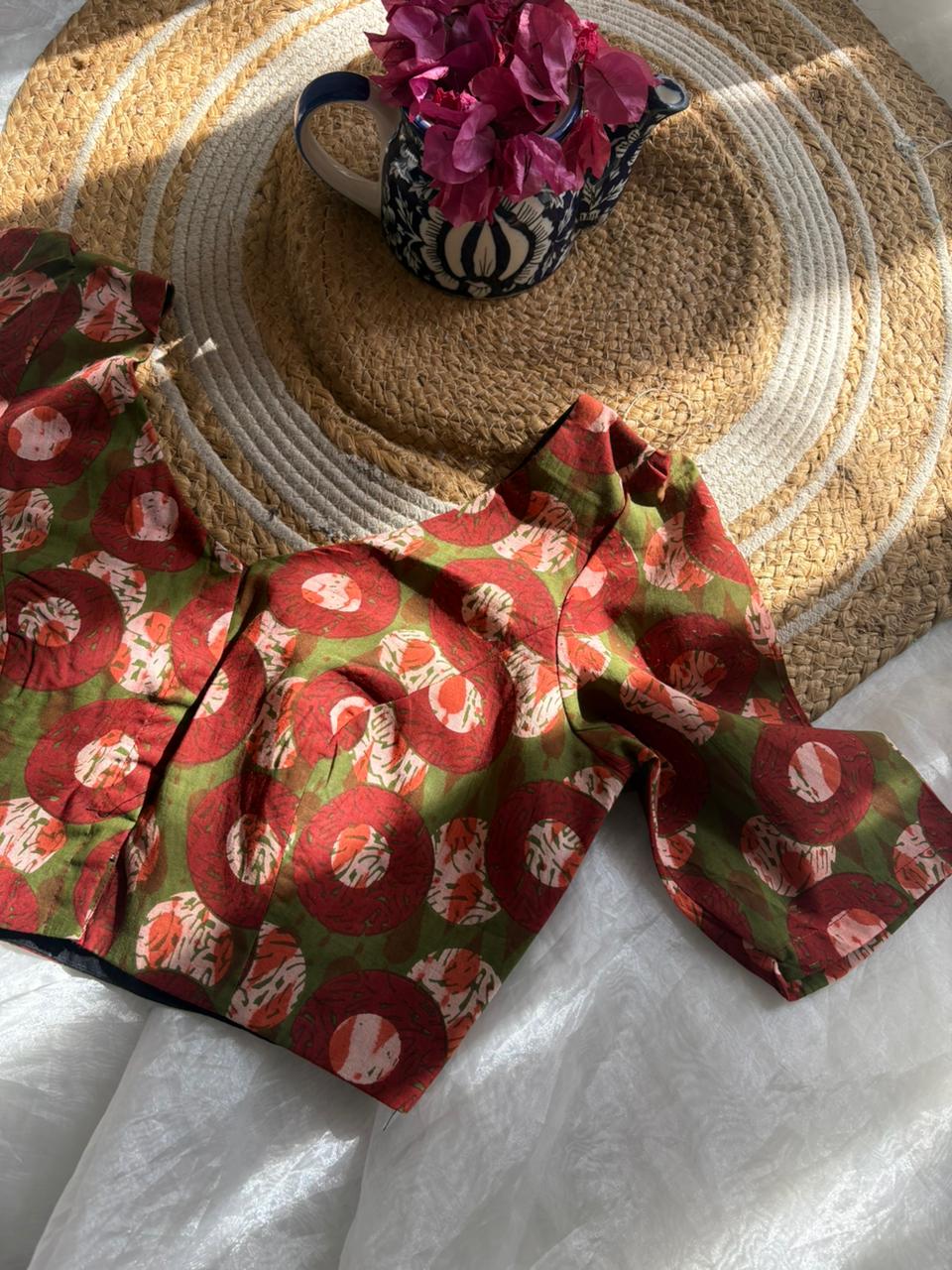 block printMUL cotton scalloped saree + blouse