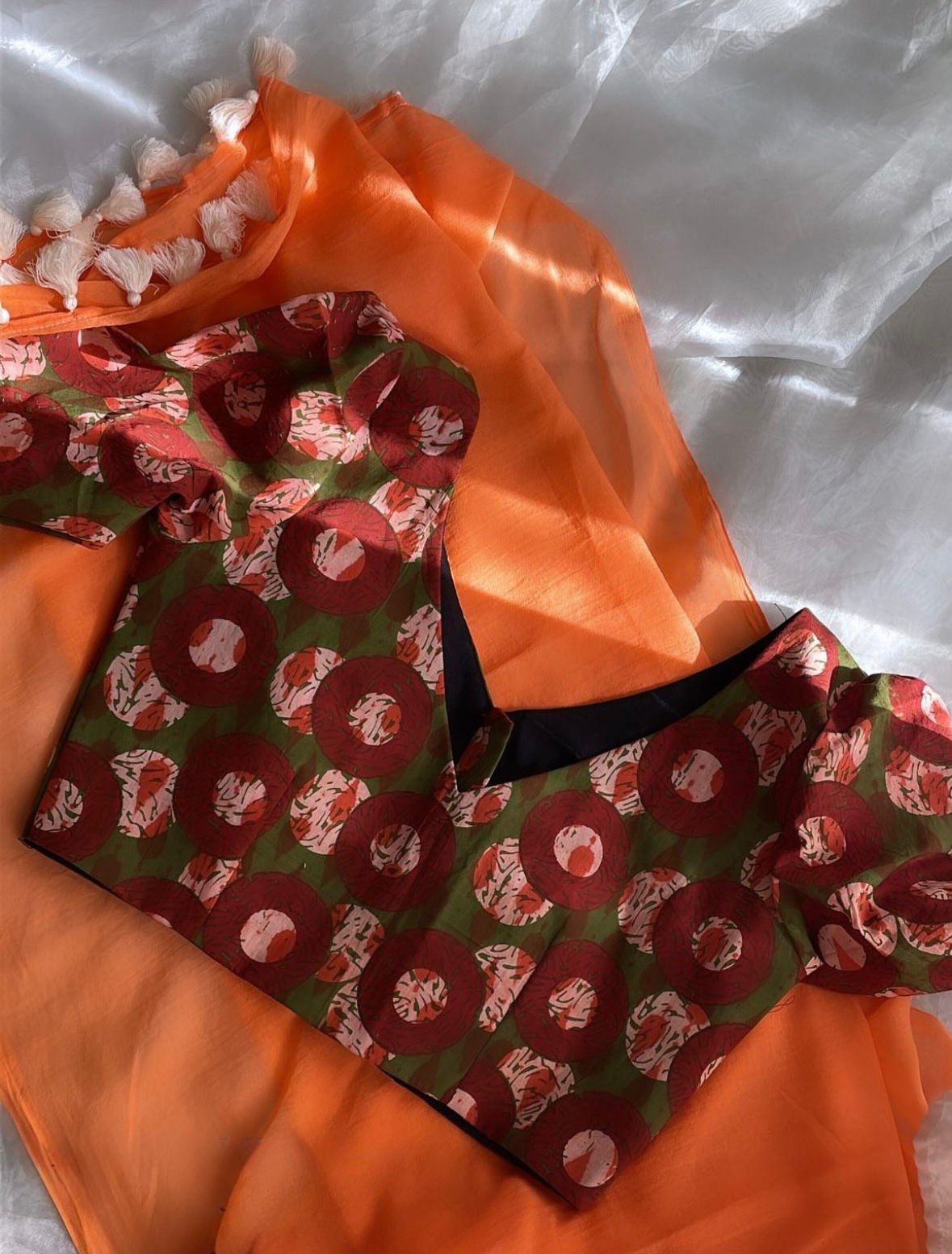 - Blouse: Ready blouse included