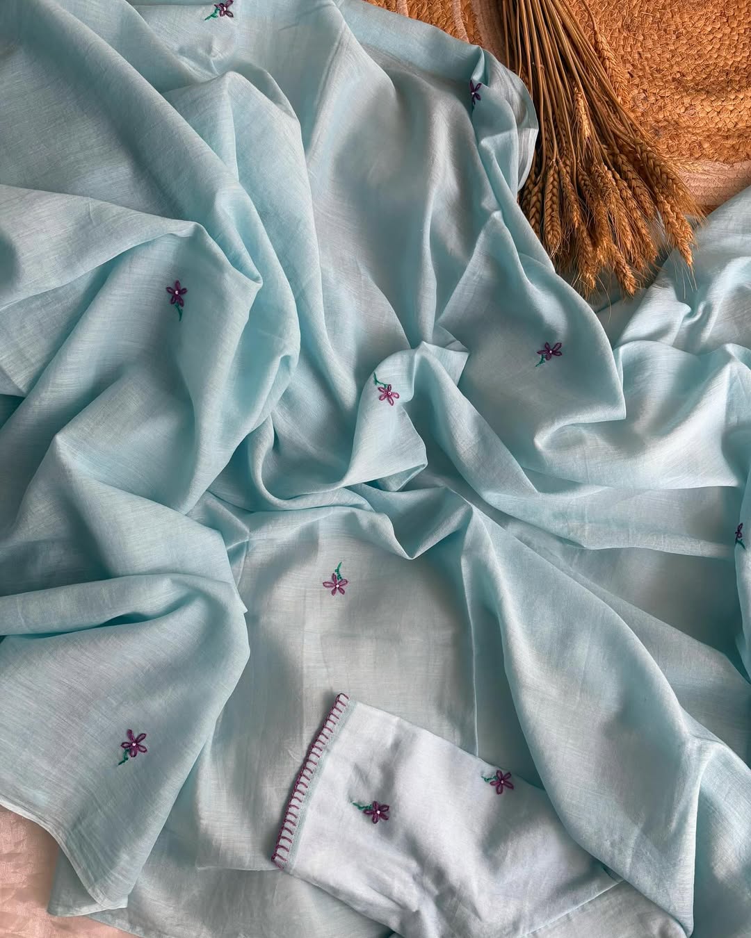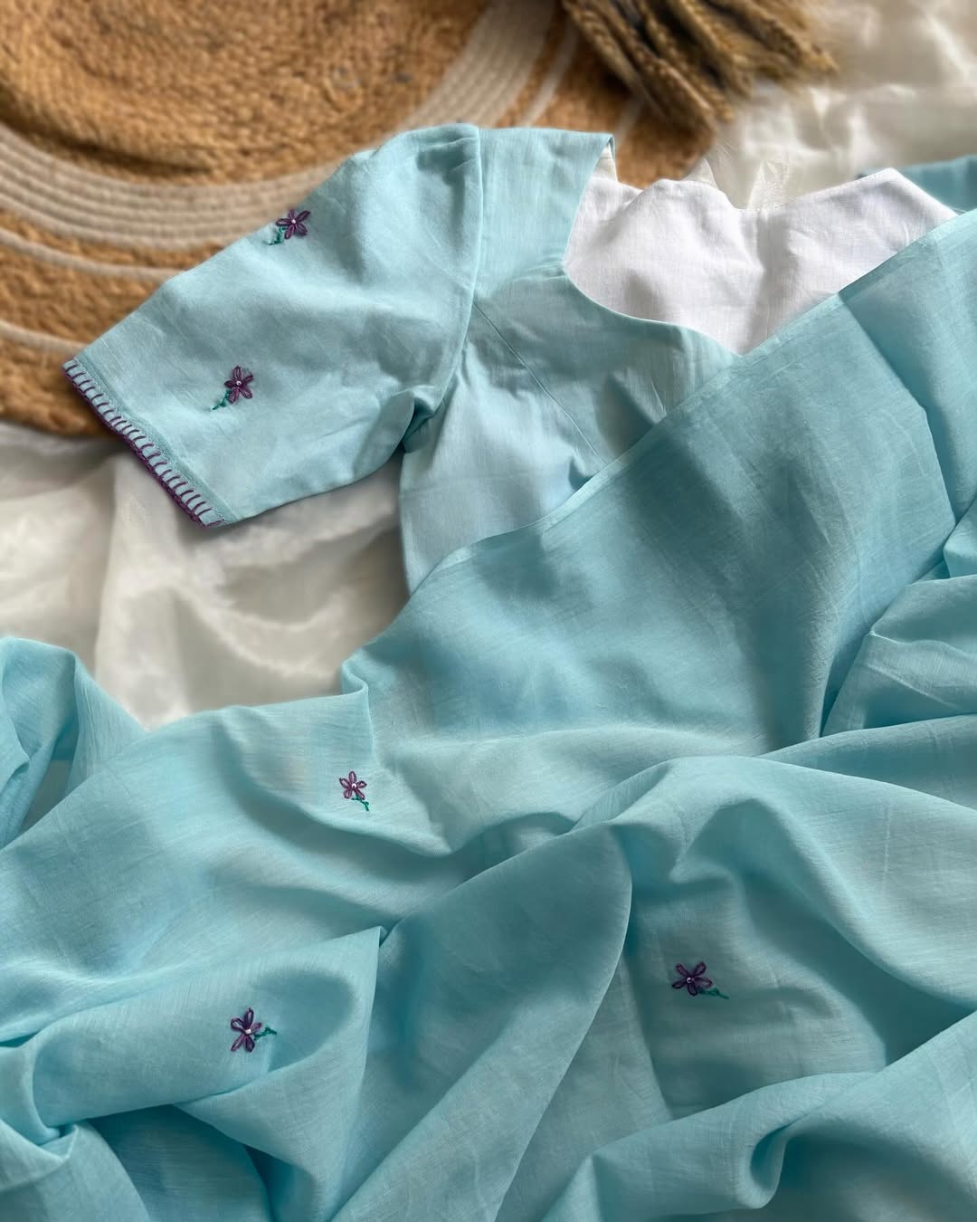 | Colour | saree and blouse: powder blue |